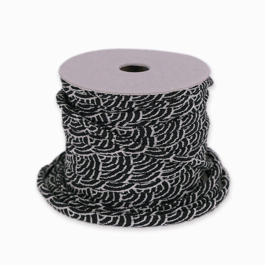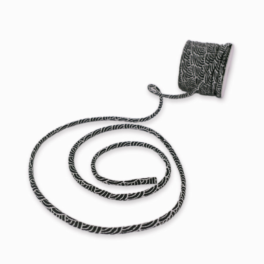 Chirimen Fabric Cord - 1/9in Ivory Wave Pattern on Black (Quantity) 1=1yard